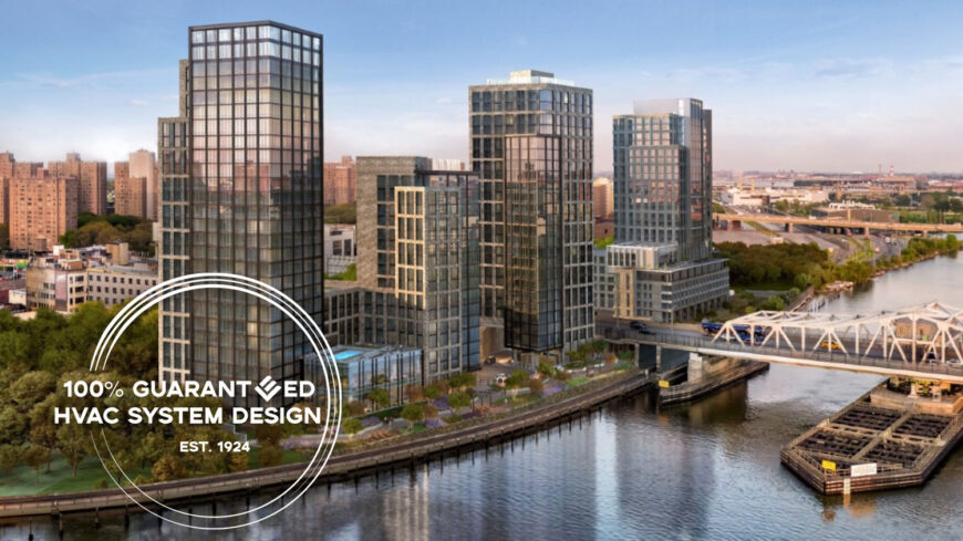 Wallace Eannace provided energy efficient HVAC system design consultative services and equipment to the project team of a large residential development in New York City, 2401 3rd Avenue in Mott Haven. To ensure building performance requirements were met and taking Local Law 97 into account, highly efficient HVAC equipment was selected for this project, including but not limited to Lochinvar condensing boilers, Xylem Bell & Gossett pumps, drives, & heat exchangers, Panasonic heat pumps, and Olimpia Splendid condenser-less heat pumps.