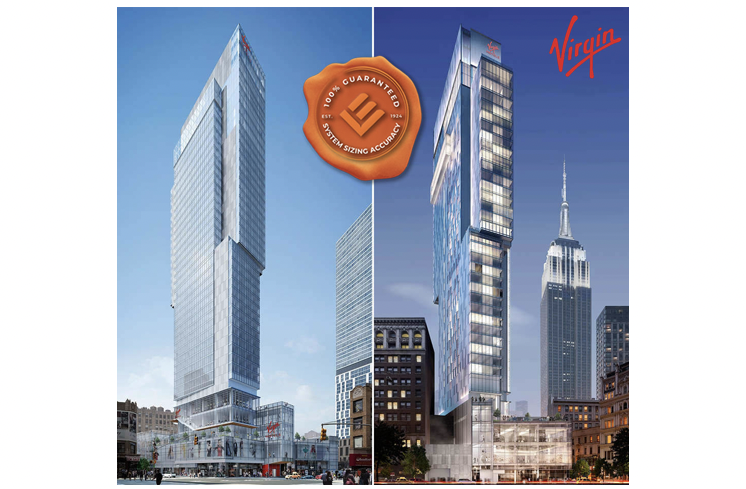 Wallace Eannace provided energy efficient HVAC system design consultative services, and prefabricated boiler room solutions to the project team of large hotel development in New York City, The Virgin Hotel. To ensure building performance requirements were met, taking Local Law 97 into account, highly efficient HVAC equipment was selected for this project, including but not limited to: Lochinvar condensing boilers, Metraflex Strainers, and Xylem Bell & Gossett pumps. The fully assembled boiler room package was prefabricated out of Tisdale Manufacturing’s Texas plant.