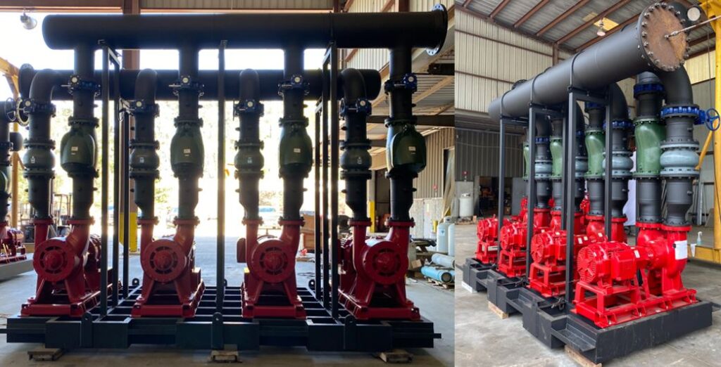 According to Jonathan Mehr, Sr. Sales Engineer “Wallace Eannace and its prefabrication partner Tisdale Manufacturing worked very closely with the project team to ensure that the system solution was designed, engineered, assembled, and tested so that the end customer’s expectations were exceeded for both energy efficiency and equipment life expectancy. There were two custom skid packages for this project. On the construction site, there was seamless coordination. The headers were delivered disconnected for ease of installation.”
